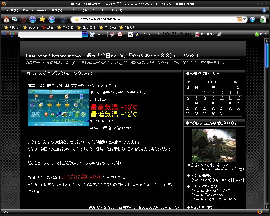 Mobile好きFly Fishing好きのOyajiです。 そしてもう1つ韓国痛であります、 「歌・ドラマ・女性」みんなチョアヘヨ(^_^)b