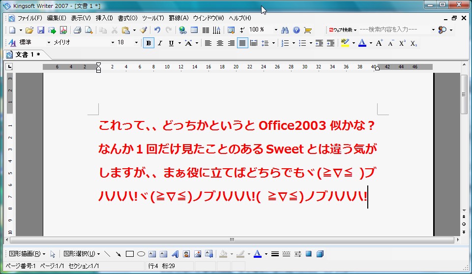 正直言ってOpenOfficeと迷ったのですがファイル容量がこちらの方が圧倒的に少ないし、最初から日本向けだし、Officeの操作性も覚えられるかと思いこちらにしてみたのでした(ё_ё)