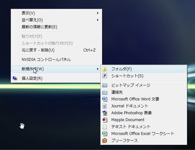 まぁ新規作成って滅多に使わないから(フォルダ作るときくらいかな)、いらないと思われる項目があってもそれなりに無視できますが、、、、