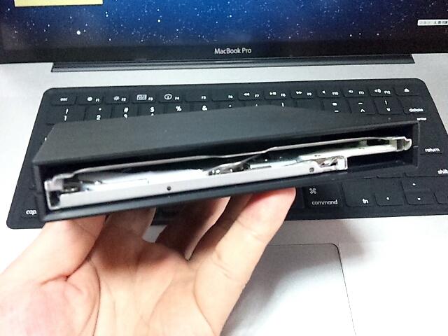 昨日MacBook Pro17内蔵のDVDドライブを取り出してHDDを装着しました。