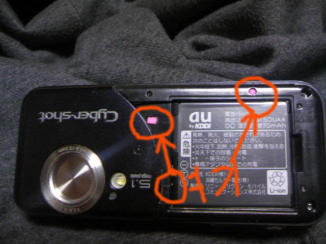 いや、バッテリーカバーを開けてとある所をご覧になる。