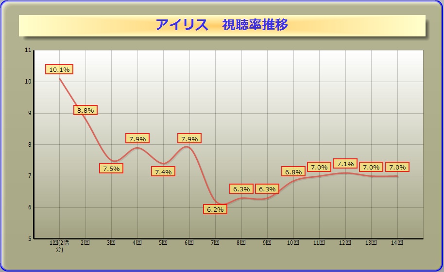 さて昨日のTBSアリス視聴率はヘタレの想像通りの平行移動7%なり。