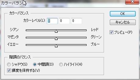 カラーバランスのCMY(RGB)を個別にスライダで変更する機能です。