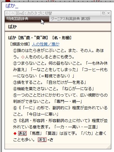 そこはそれネットに繋がっていれば何らかのweb辞書を使えば良いんだけども、、、