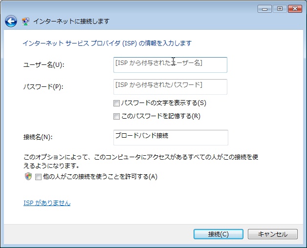 パソコのをインターネット接続設定ってのがあって(ブロードバンドね)、、、