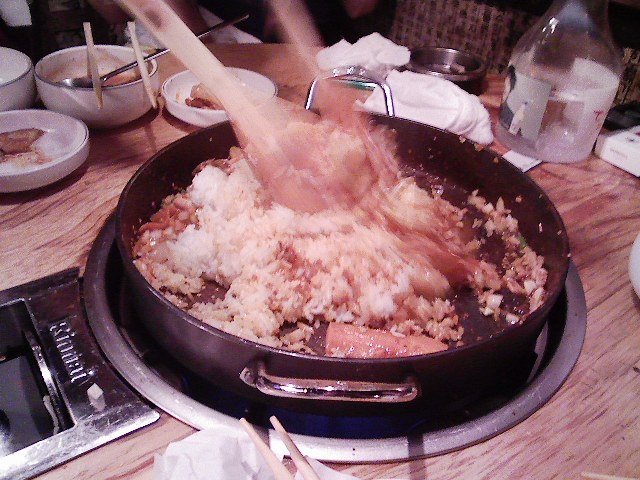 連れのカンコッキーがタッカルビを少し残して焼き飯を作ると言い出しました。。。