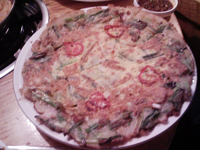 左が海鮮チジミであります、、良く切れてないじぃ~(^^ゞ