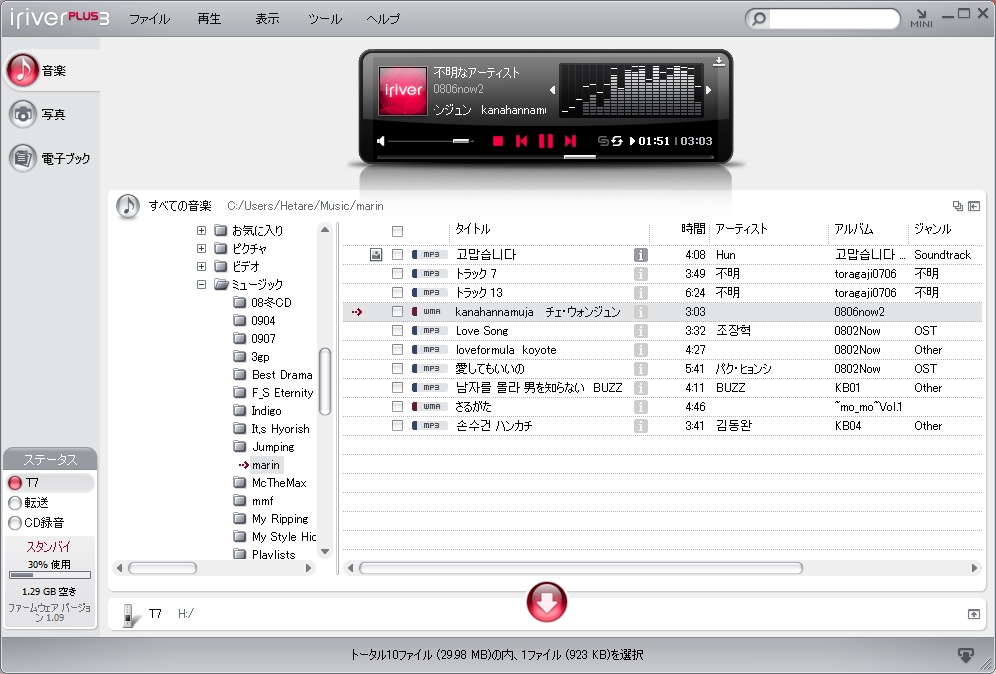 iriver社のT7を買ったときに付いていたiriver plus 3というユーティリティアプリの話しです。