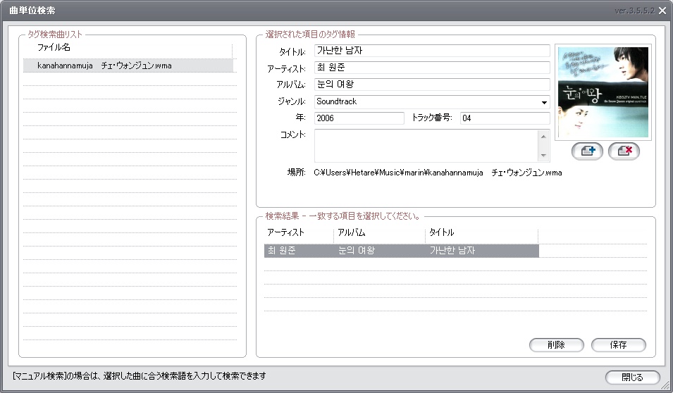 写真右のようにアルバムジャケットまで引っ張り出してきてくれますし、オリジナルのタグデータが復活します!!