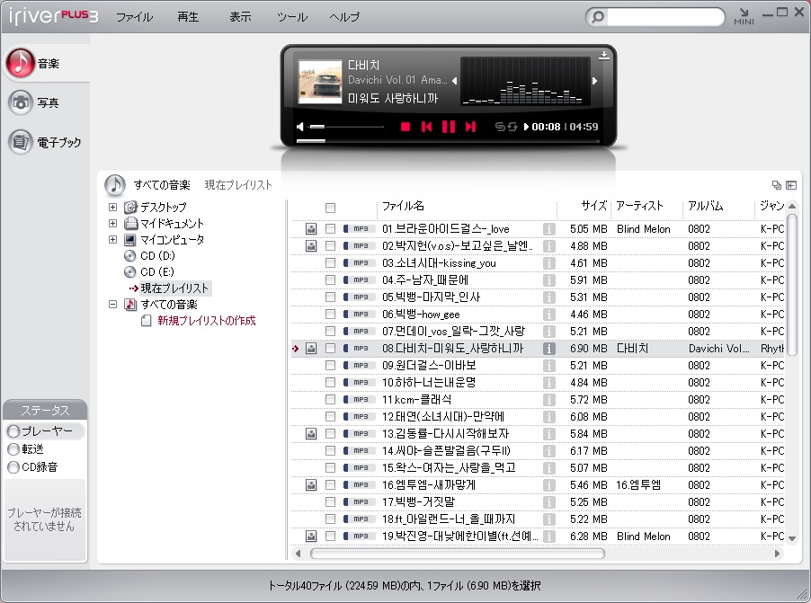 ヘタレの聴く音楽はK-POPなので携帯や日本製プレーヤーだと文字化けのあらし。
