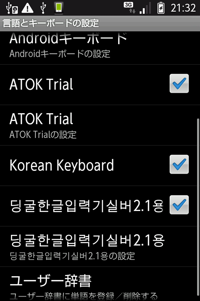 その後に言語の設定で「딩굴한글입력기실버2.1용」にチェック入れればOKです。