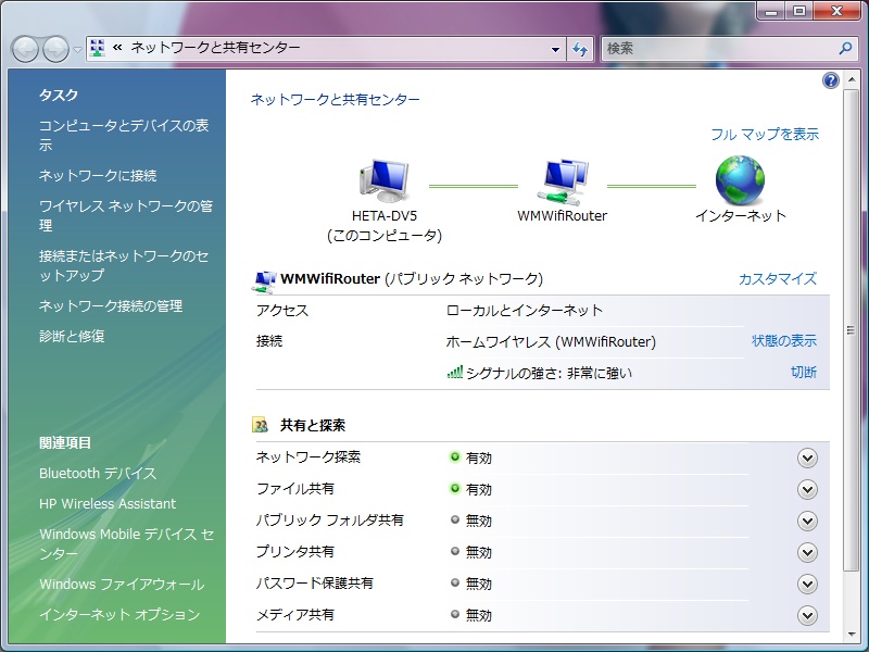 さっそく母艦hp dv5から接続先を見てみると、、、
