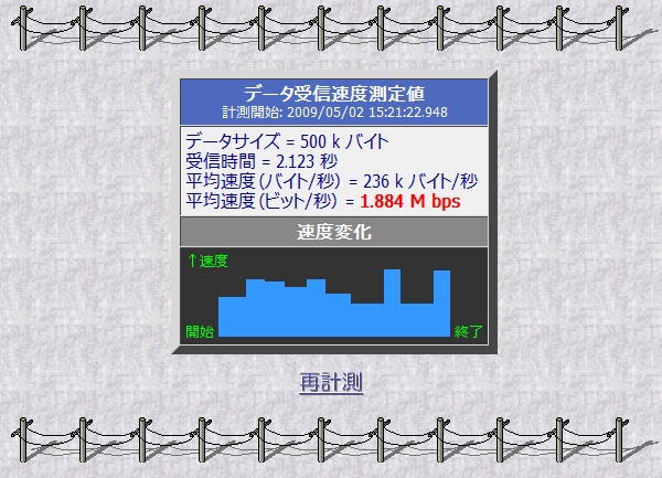以前の実験だと調子よければ2M超えていて1.5Mを割るっていうのは珍しいのね。
