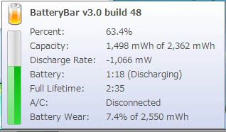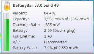 これまた以前日記にしたBatteryBarというバッテリー監視ユーティリティアプリです。
