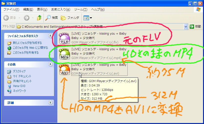 仕方がないのでオリジナル画質のflvファイル(約11M)もダウンして再生してみる。