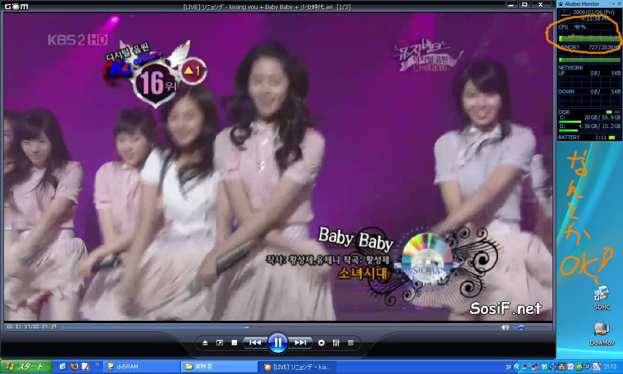 早速ダウンロードしたファイルをSX3に移動して、同じくGom playerで再生してみると、、