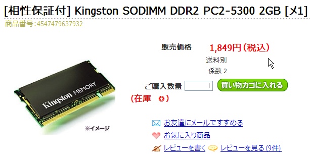 SX3をポチッた日に上海問屋でポチッた2Gメモリをぶち込みました。