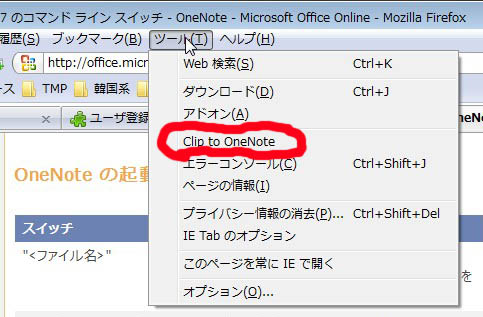表示ページ全体は、右写真のように上部のツールバー「ツール」よりOneNoteにデータ転送が可能であります。