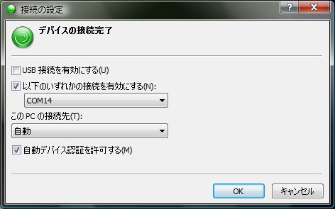 で、デバイスの接続設定で直接COMポートを指定してあげないとダメなんだね(右写真)。