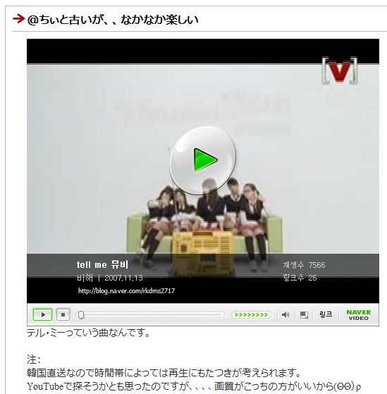 ヘタレの日記の中で韓国動画(韓国直リンクの)をタグ埋め込みで書くと、、、
