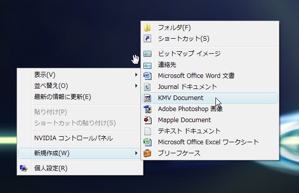 この右クリック内の新規作成項目って新しいアプリを入れると増えてきますね。