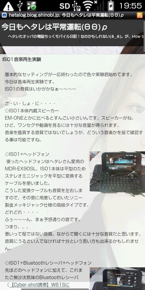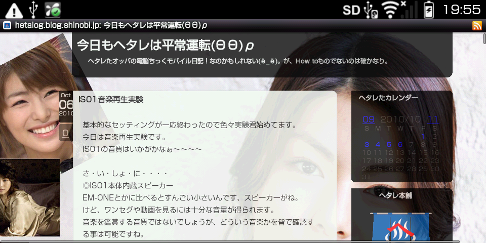 さて、折角のことIS01のスクリーンショットが撮れるようになったので、ヘタレサイトをIS01標準搭載ブラウザで見た場合をご覧入れましょう。