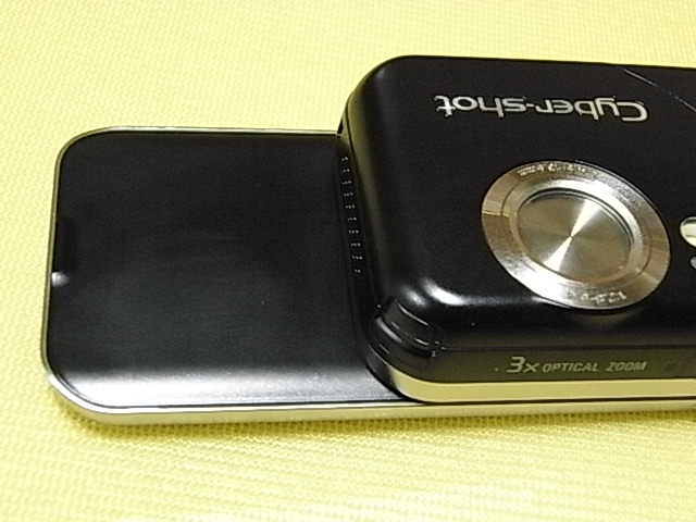けどCyber-shot携帯のは開いてから、、、手前に3ミリくらいフタがスライドできるんです。