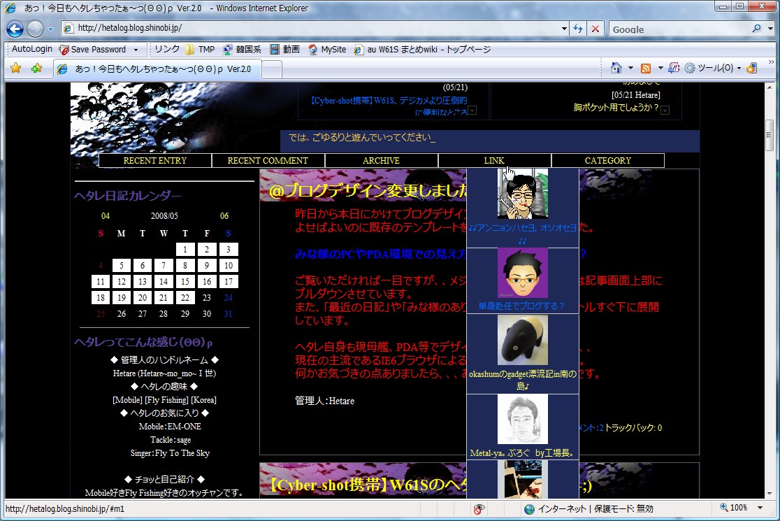 やはり写真画質に不満足だったので、その点の機能が大幅に向上されるであろうCyber-shot携帯W61Sに多いに興味を持ちバッテリもヘタって来たし、本体も痛んできたし、、って事で購入に至ったのであります。