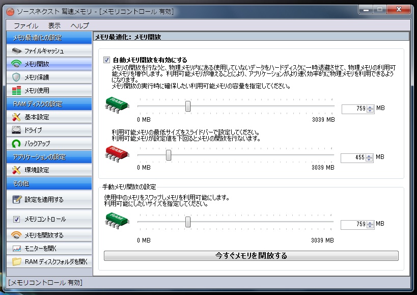 1:PCのメモリ利用を自動で最適化して、動作を高速化させる