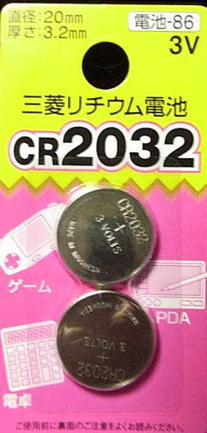 いや、、なに??そんなに安いのぅ~(ノ゜⊿゜)ノびっくり!! ボタン電池が無くなったという、、、 「あらぁ~、、今からデンキ屋かぁ~」 「そこの100均にあるでしょぅ」とヘタレ 「うっそぉう、、そんなに安いわけないじょ」 「あるよ、あるってメーカー選ばなきゃ」とヘタレ と、やりとりの後に本人がお買い物に・・・・・ はい、はい、、帰ってきましたよ、電池買ってね 「だはははっっ、、2個で105円だったよぅ~」 え!!Σ(=゜ω゜=;) マジ!? た・確かに2個入ってるねぇ~、、 そんなに安いわけ、、、あったよ(^◇^;)