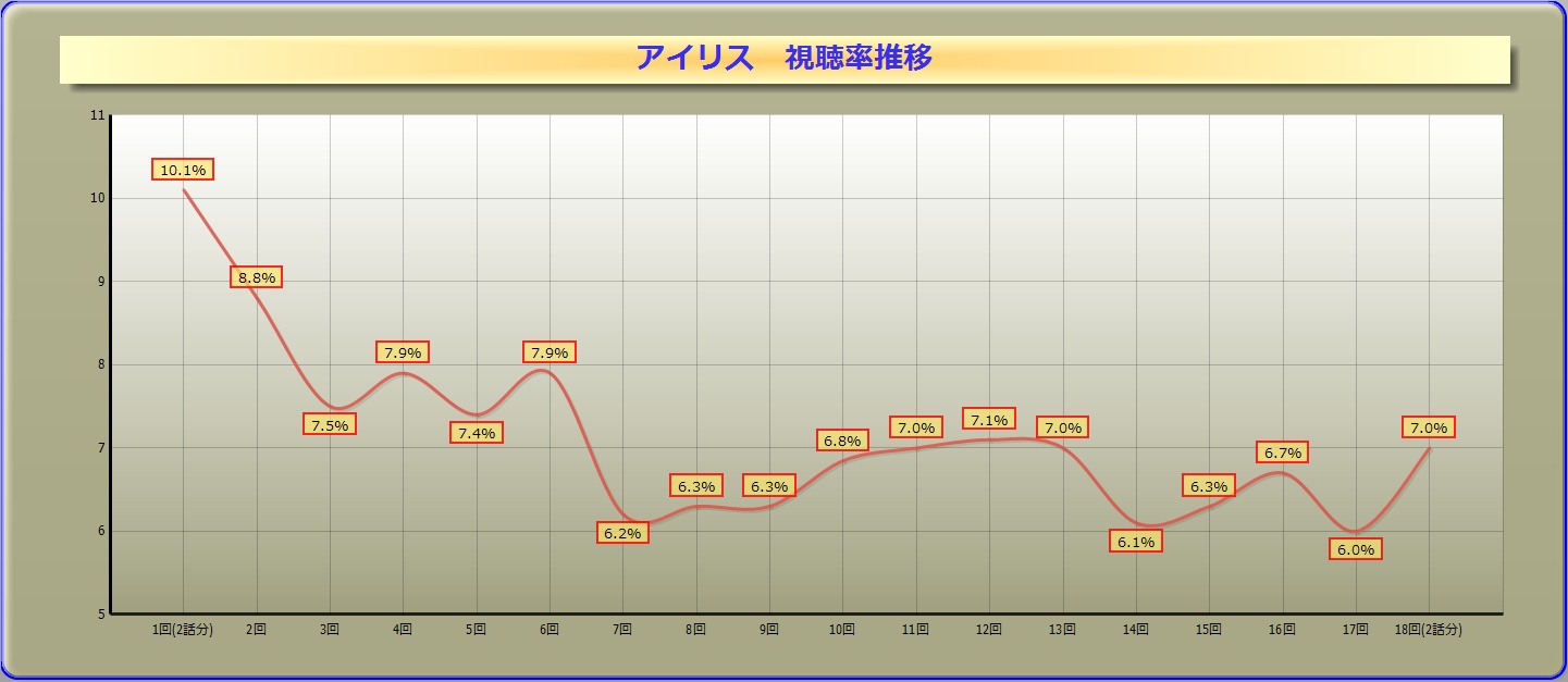 今月はしっかり忘れてました、アイリスの視聴率推移が終わって一安心したのがいかんかった。