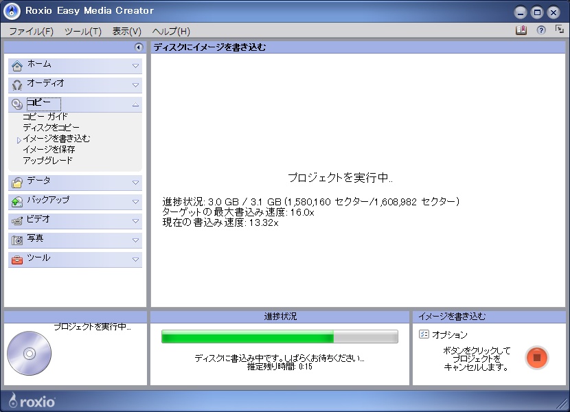 ノートパソコンの内蔵DVDドライブに早さ(書き込み・読み込み共)を求めることは出来ないようであります。