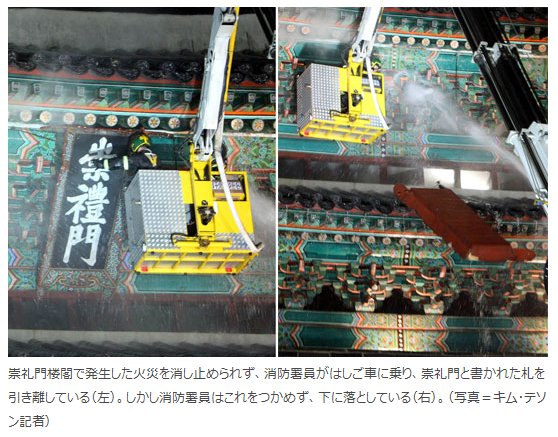 WS00091.JPGなんたる事か、南大門の消失が放火の可能性が高いという。おそらく南大門は韓国の象徴であると共に韓国人の心の象徴でもあったはず。それがこのような形になろうとは・・・・・韓国痛であるヘタレでも相当にへこたれる出来事である、当事者たる韓国人にしたらヘタレが思う以上の衝撃に違いない。ヘタレの周りの韓国人にどう声をかけたらよいのか戸惑うばかりだ、かといって知らない振りも出来るわけがない。 本日はパソコンの調子が悪くニースを知るのも遅れたし、、、情報の収集も遅れた。しかし、、本当に残念でならぬ。こちらに動画もあがっています、見れば見るほど無念ですが目を背けてはいけない。