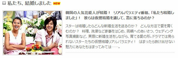 おりょりょ、ヘタレが昨年からユイちゃんが出てるって事で見始めた韓国バラエティ「私たち結婚しました」がGyaOに登場ですねぇ~、、